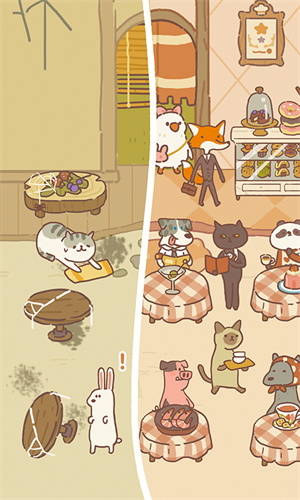 一家动物餐厅,可能看到超级多的可爱小兔子,里面的小小动物一个比一个Q萌,可以升级餐厅厨房,制作成的美味佳肴来满足这些动物,当服务项目结束后你将会得到小鱼干,游戏玩法有意思,休闲娱乐点一下。与顾客做好朋友,开启各种各样的菜谱,经过专业研制的菜谱是餐厅热度的确保,还可以通过持续宣传策划,提升饭店人气,与此同时还能提升你的收益。