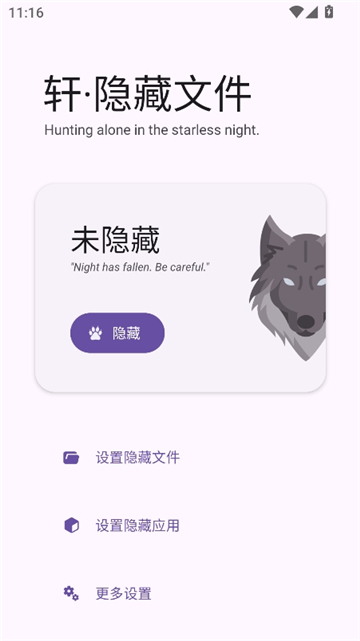1、在本页面下载轩隐藏文件手机软件,安装完毕开启点一下“设定隐藏文件”