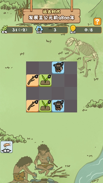 2、开始游戏如下图,玩家需通过移动来减少同样的三个格子,以此仿真模拟文明发展;