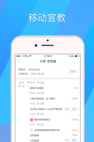 317护多种多样学习方式可选择,包含训练模式,模拟试题和背题模式,满足客户人性化的学习需求,大量教学内容,医院门诊,住院治疗双模,适用医院公众号订制,推动医院门诊完成课堂教学同优质化,即时化,提高医院科室管理方法知名品牌,创新传统线下教学方式,根据疾病及医生叮嘱,个性化推送身心健康课程内容至病人手机上,回收利用病人满意度,搭建课堂教学闭环控制,完成数据可追溯,可监管,可实测。