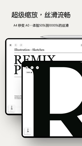适用1000%页面缩放,将打印纸张总面积一瞬间增加十倍,令您在一页纸上能够记录更多精彩的前提下,书写依然顺滑顺畅。PDF与照片同样支持1000%放大,任何一个微小的细节都不愿错过。