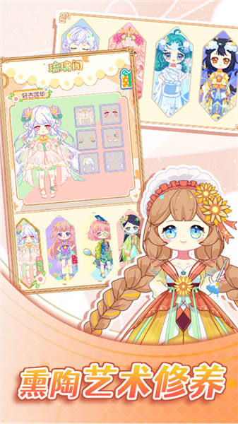 1、开启可以公主间小游戏,进到游戏首页,玩家还可以在首页见到选美比赛、公主榜、琉璃阁、赏析师、公主法术等,点击进入换装栏;