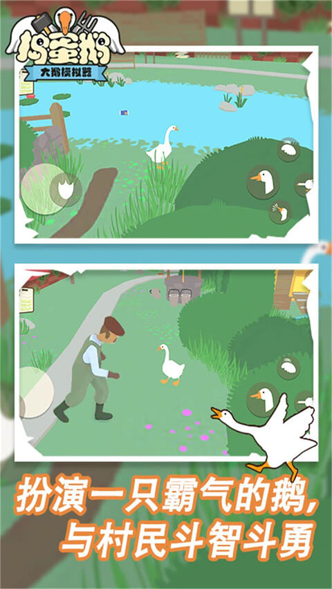 捣蛋鹅Untitled Goose Game是通过House House开发设计创意3a游戏,玩家在游戏中化身为一只顽皮的家鹅,闯进寂静的英国小镇,以捉弄为主要目标进行探险。你能叼走了园丁的钥匙、盗走群众帽子、在清晨鸣叫声扰人清梦,乃至设计方案链式反应制造混乱。游戏采用清爽治好的卡通图画风和栩栩如生声效,组合简单易上手操作,令小伙伴们在和居民的互斗中,尽情挥洒工作压力、获得欢乐。